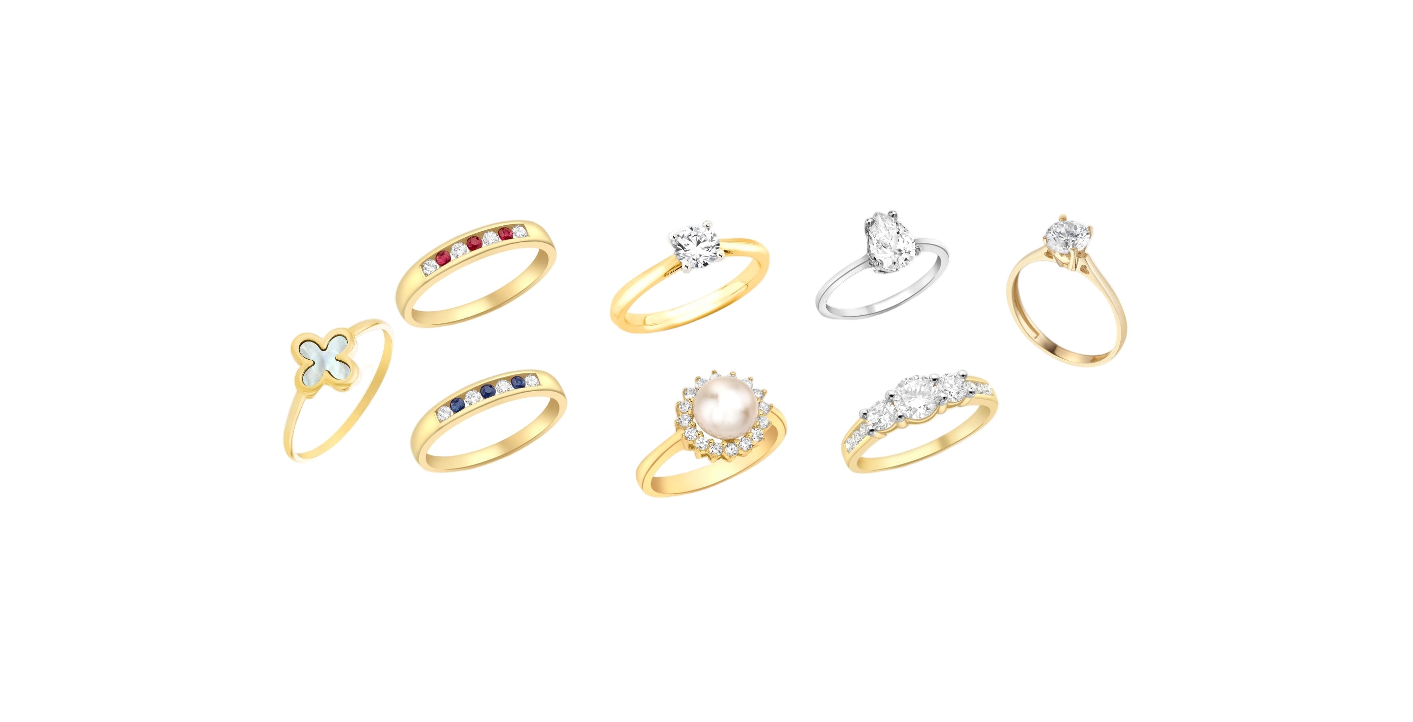 A selection of 9ct Gold and Cubic Zirconia Promise Engagement rings.