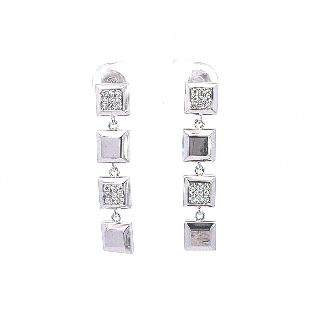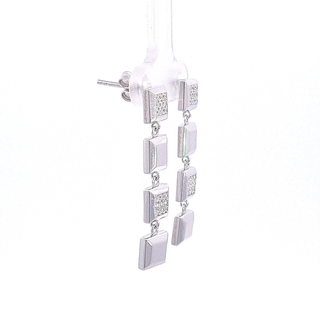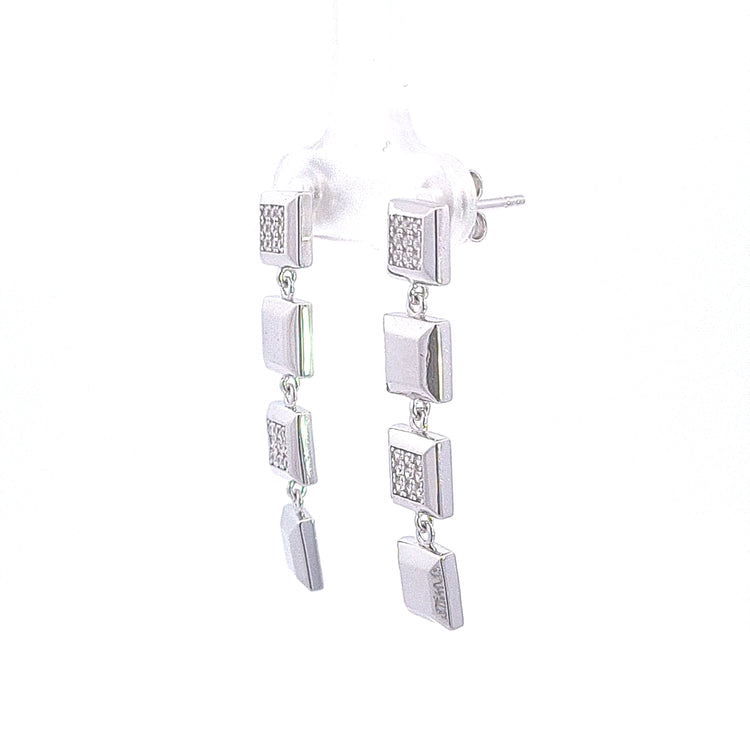 Sterling silver multi panel CZ set drop earrings with post and scroll fitting