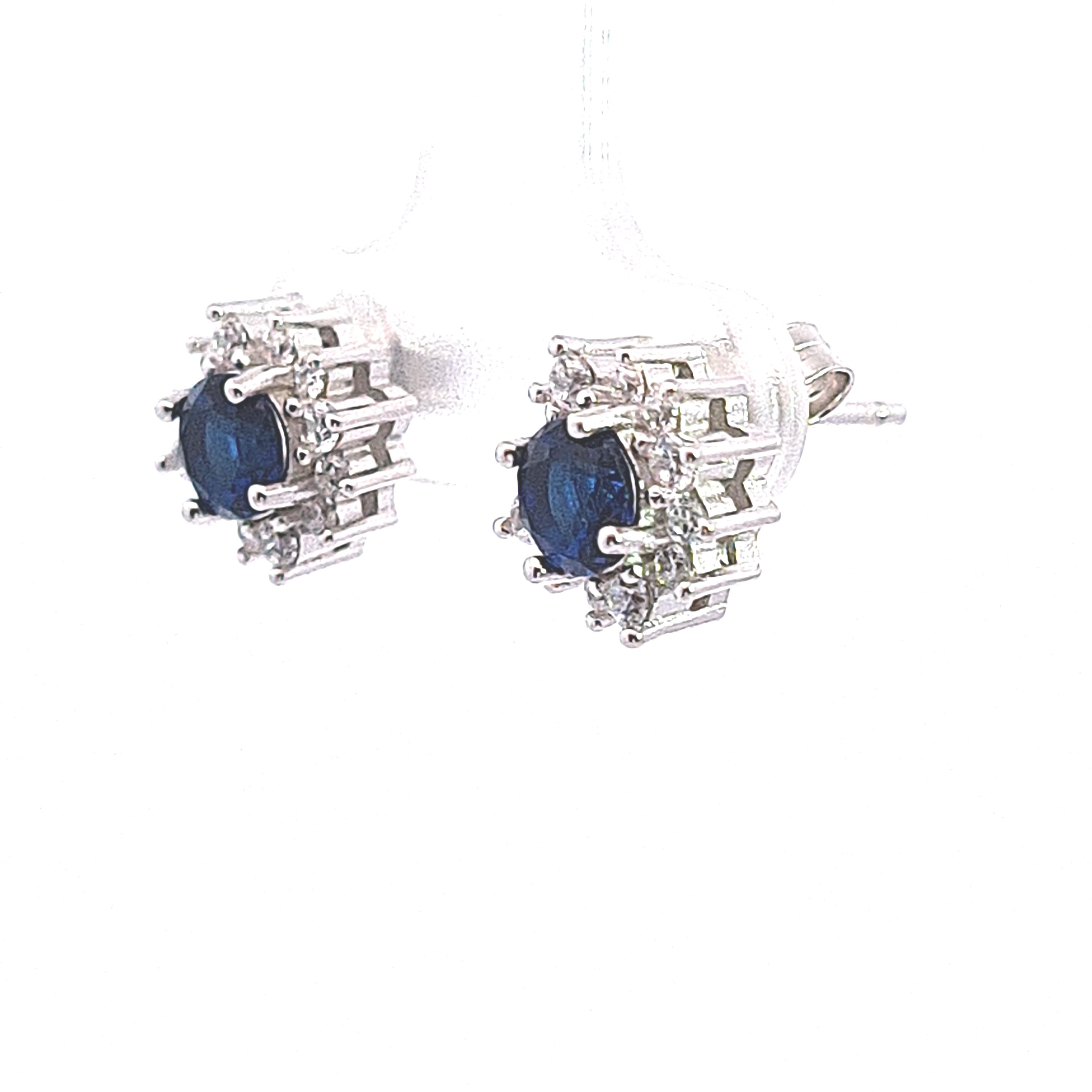 Sapphire blue CZ cluster stud earrings 37641
