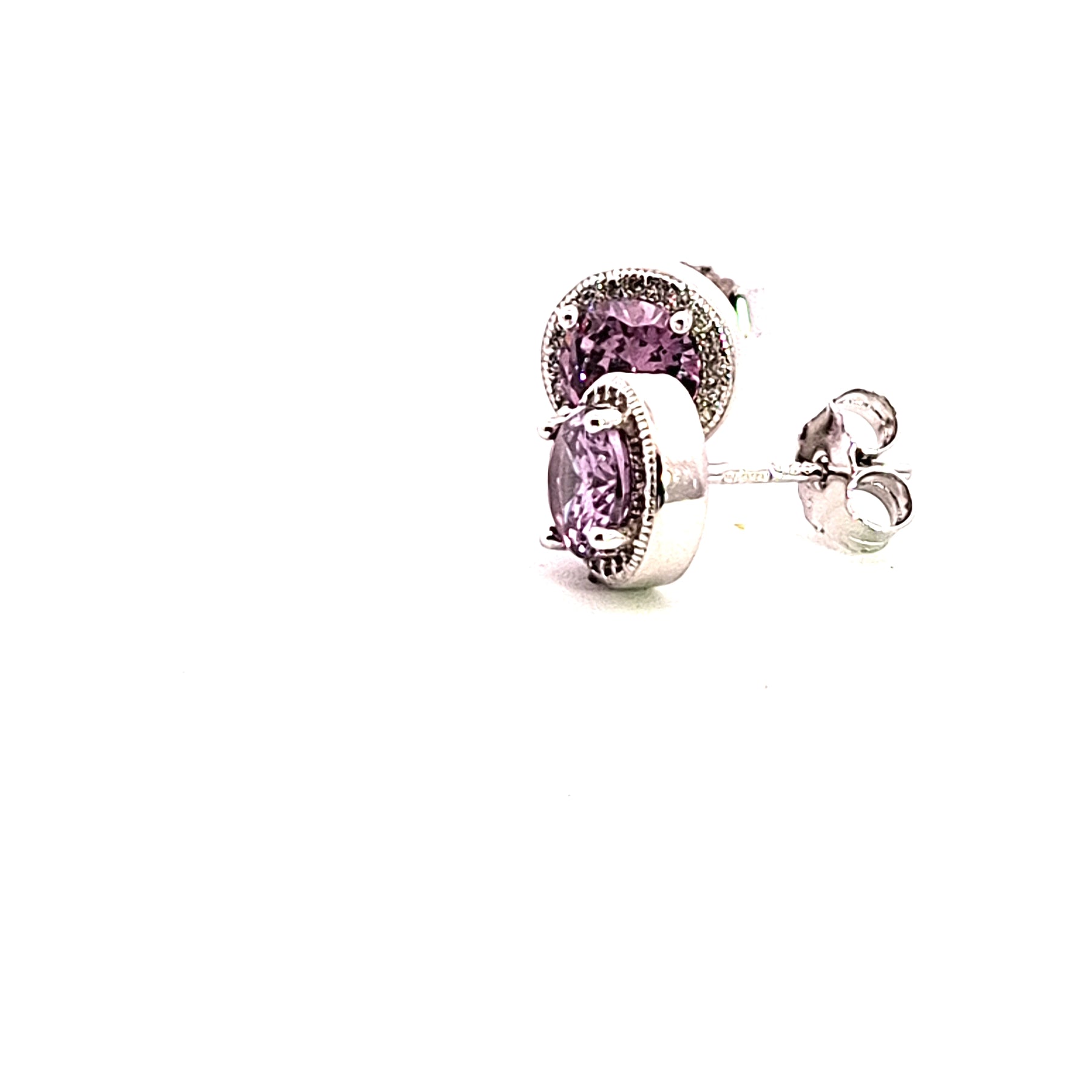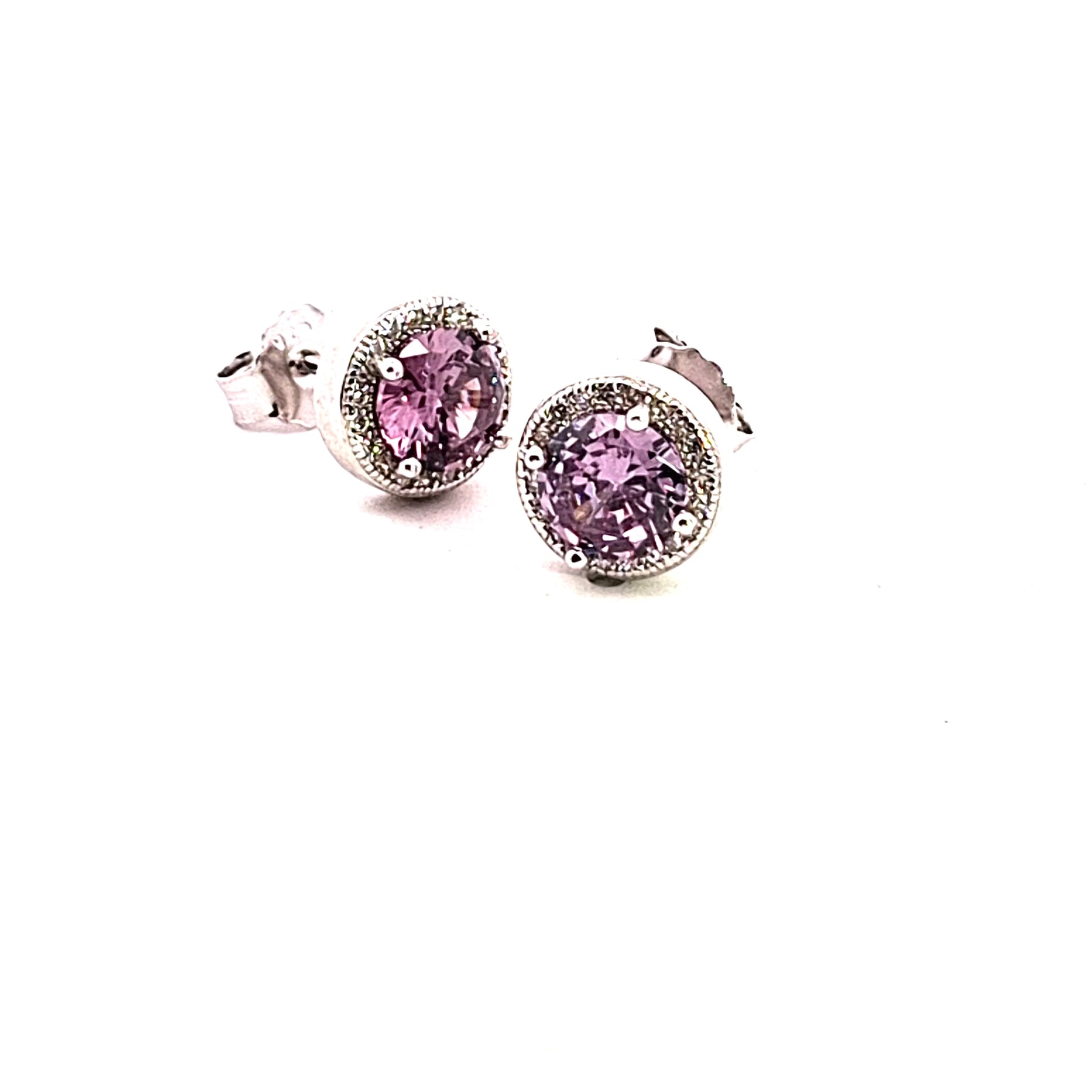 Sterling silver 8mm Amethyst Purple CZ stud earring with CZ surround