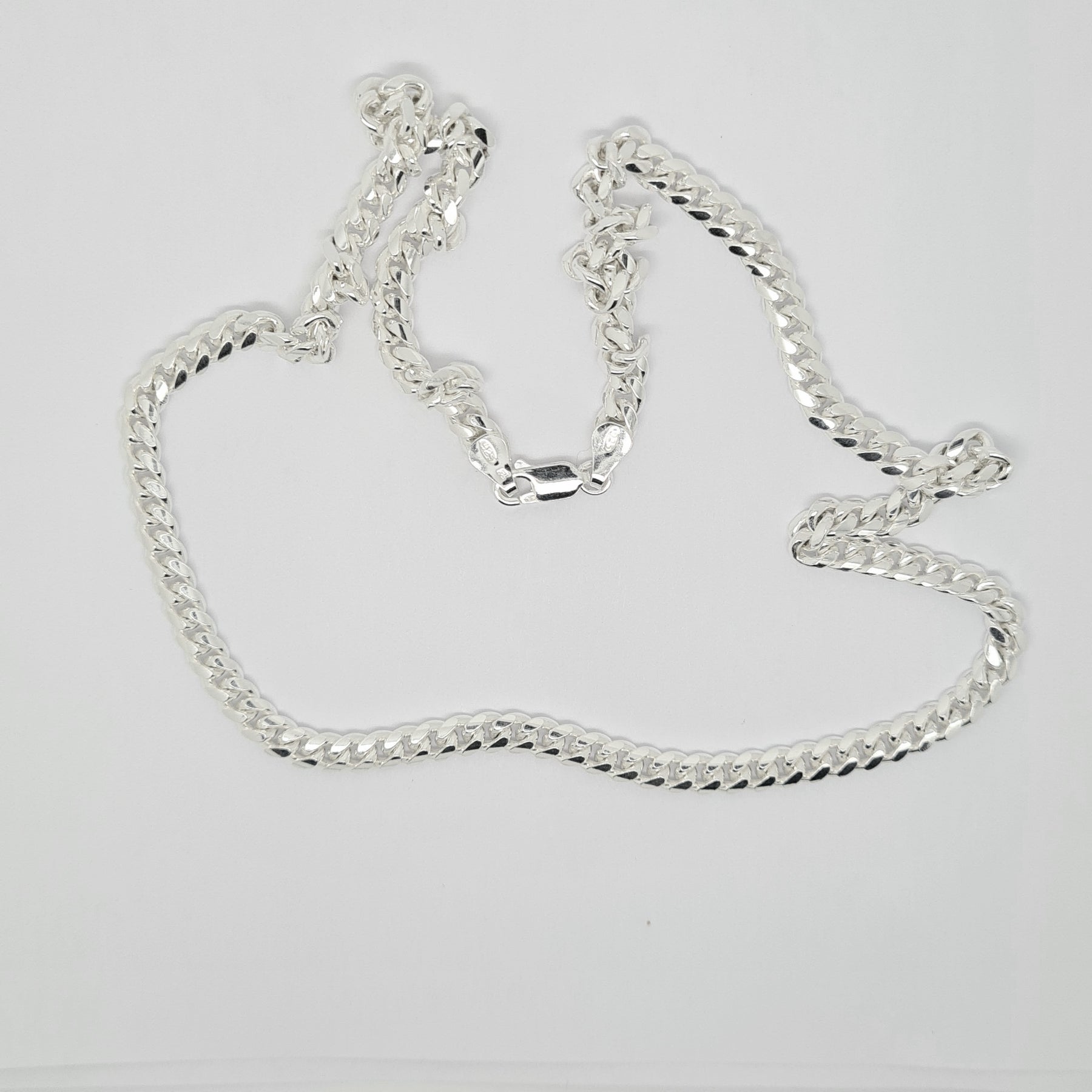 Cuban curb link gents 22"/56cm chain, 5mm wide, in sterling silver. Trigger catch