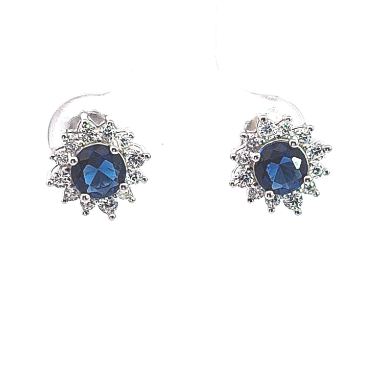 10mm Sapphire blue CZ cluster sterling silver stud earring