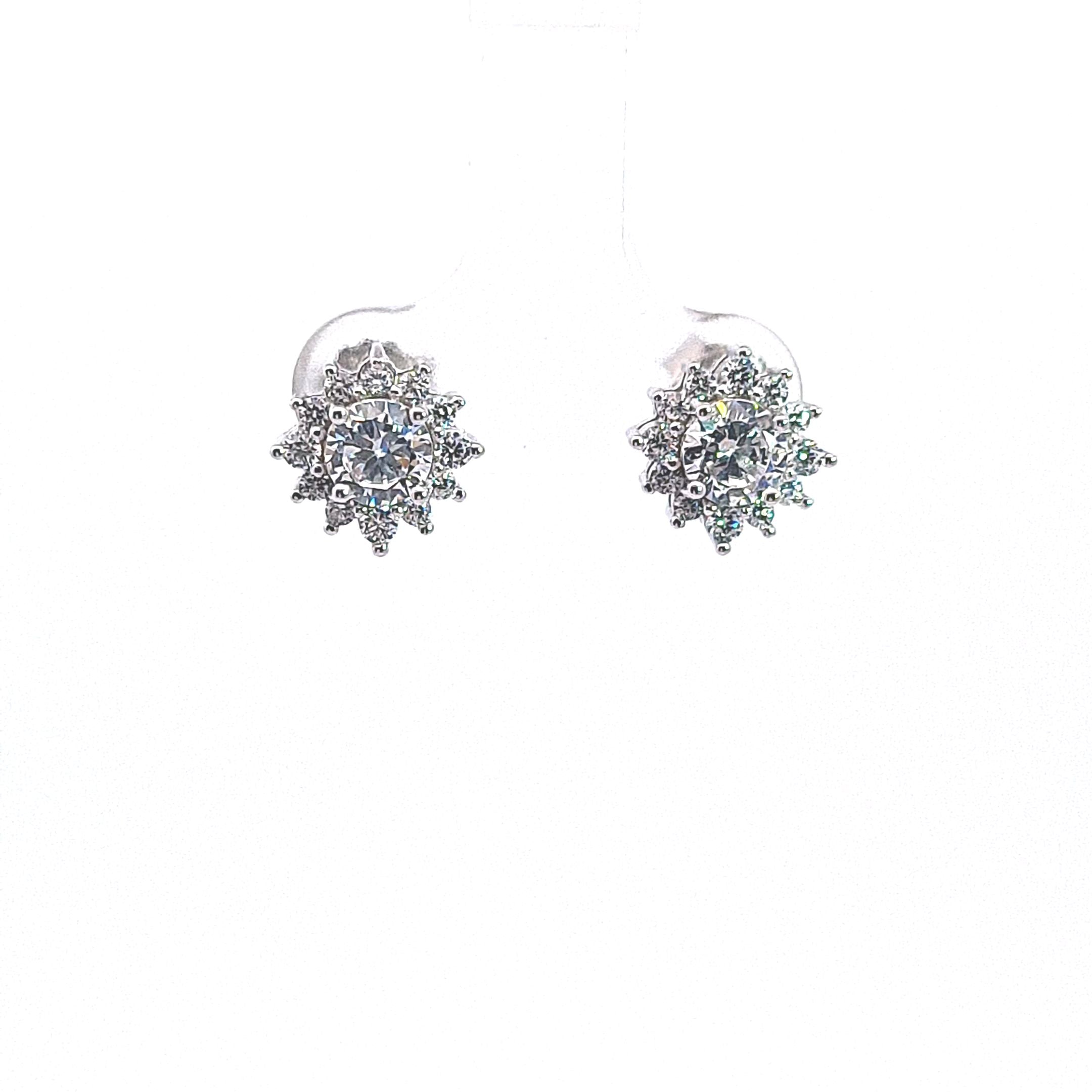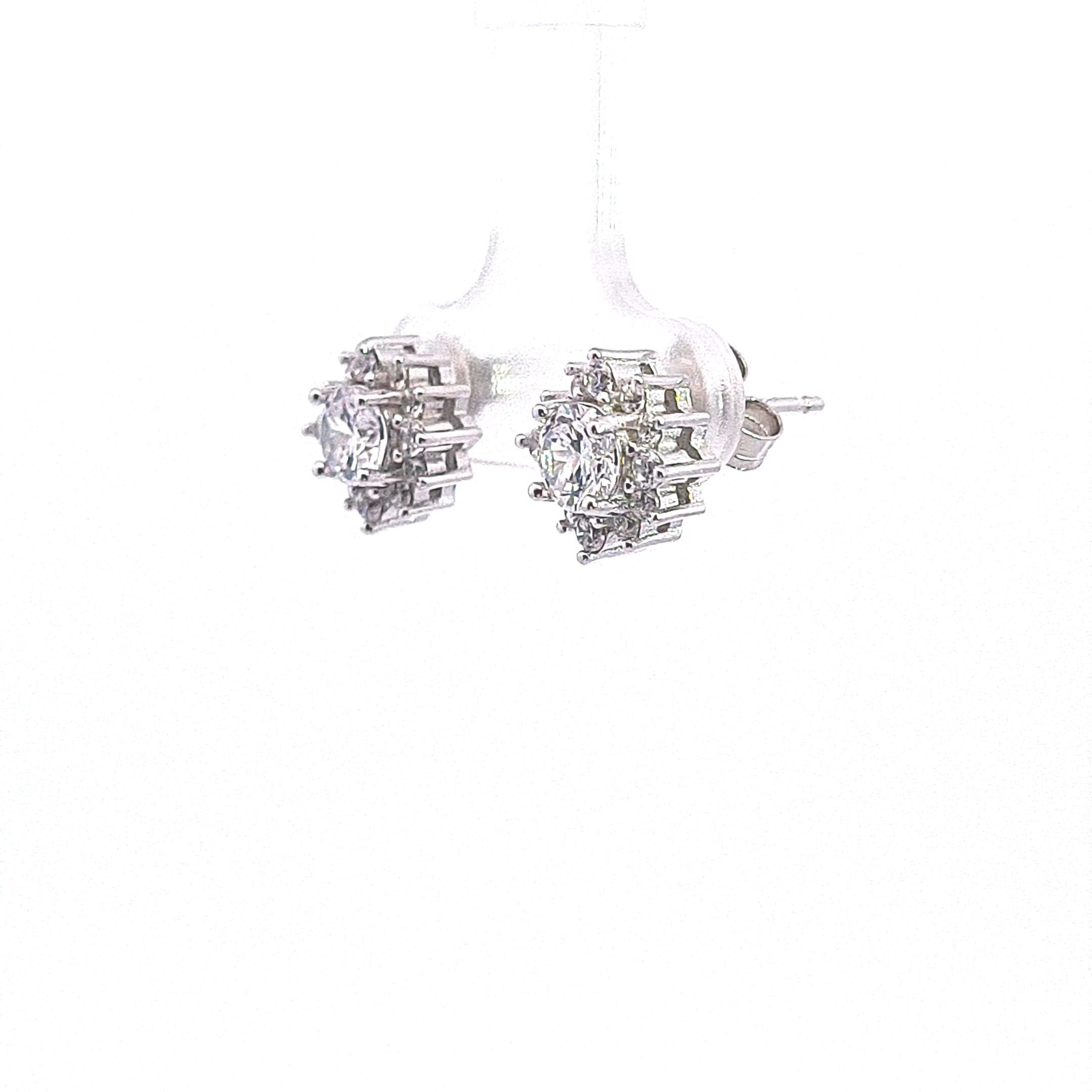 10mm deep pink CZ cluster sterling silver stud earring 37642