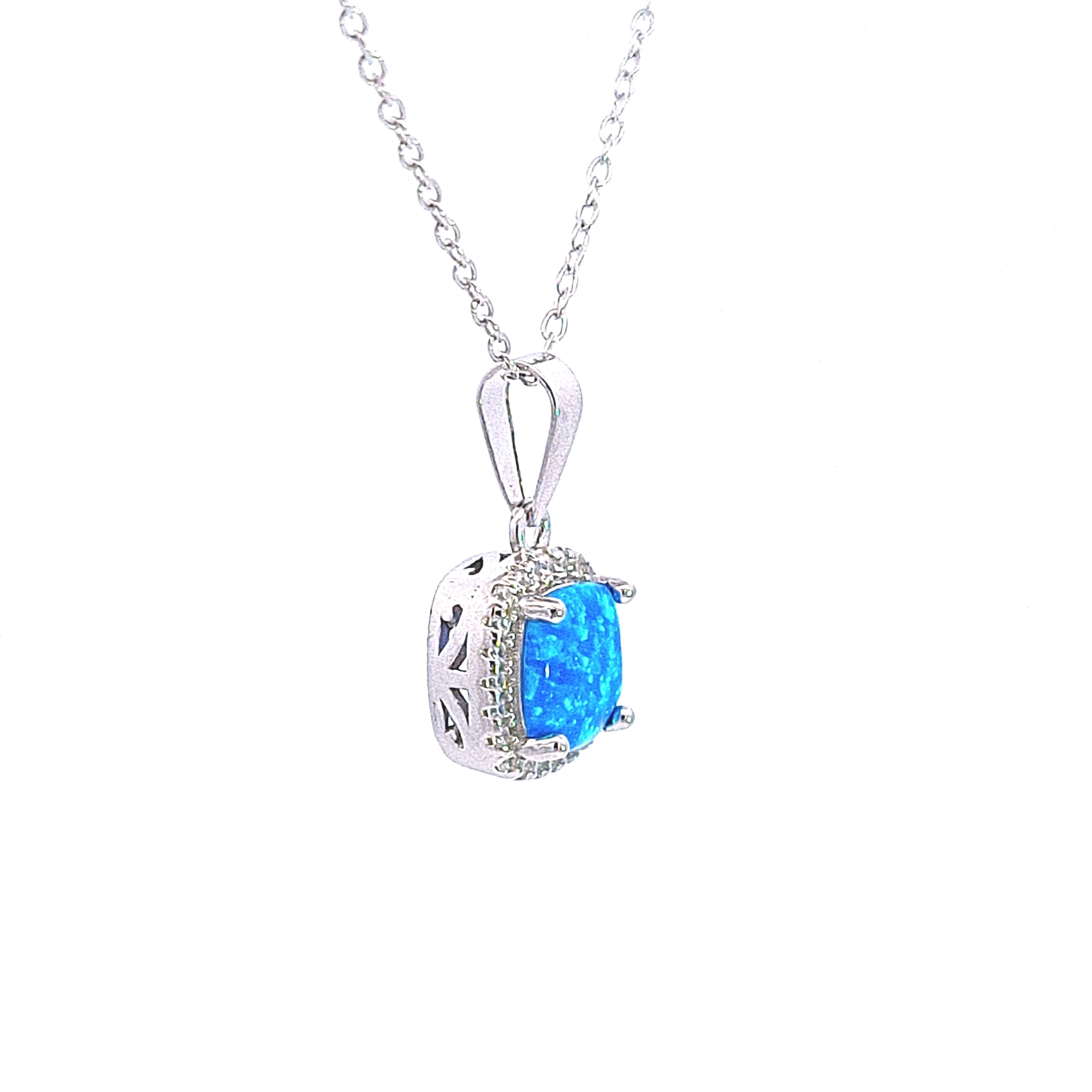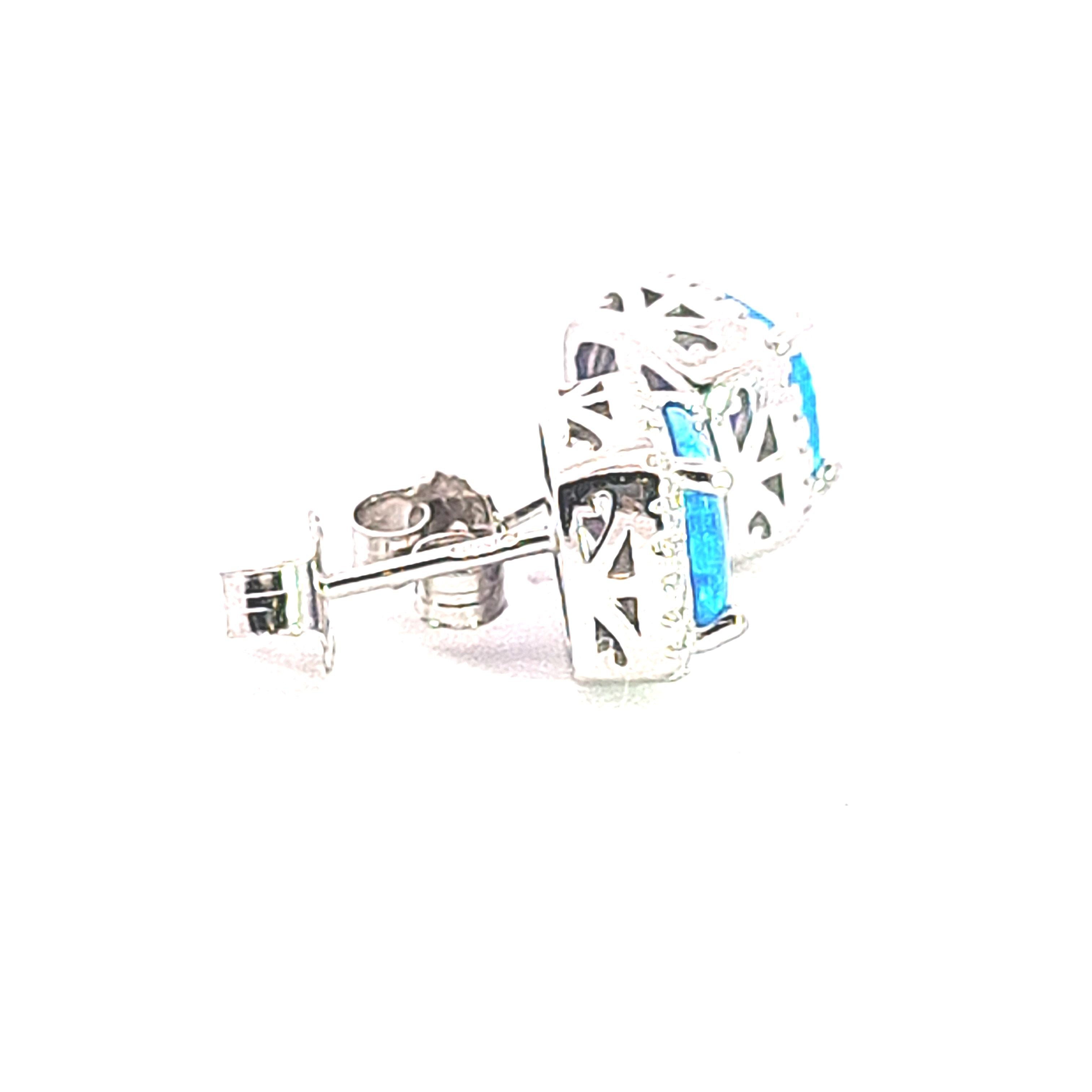 Cushion shape synthetic Blue Opal stud earrings 37662