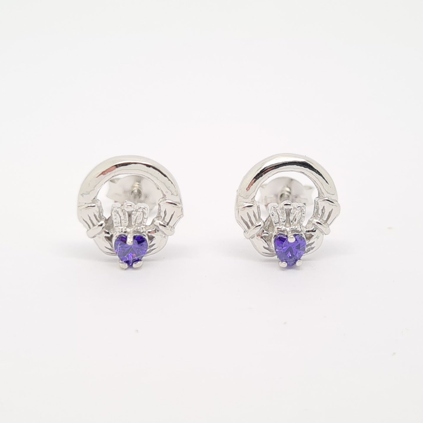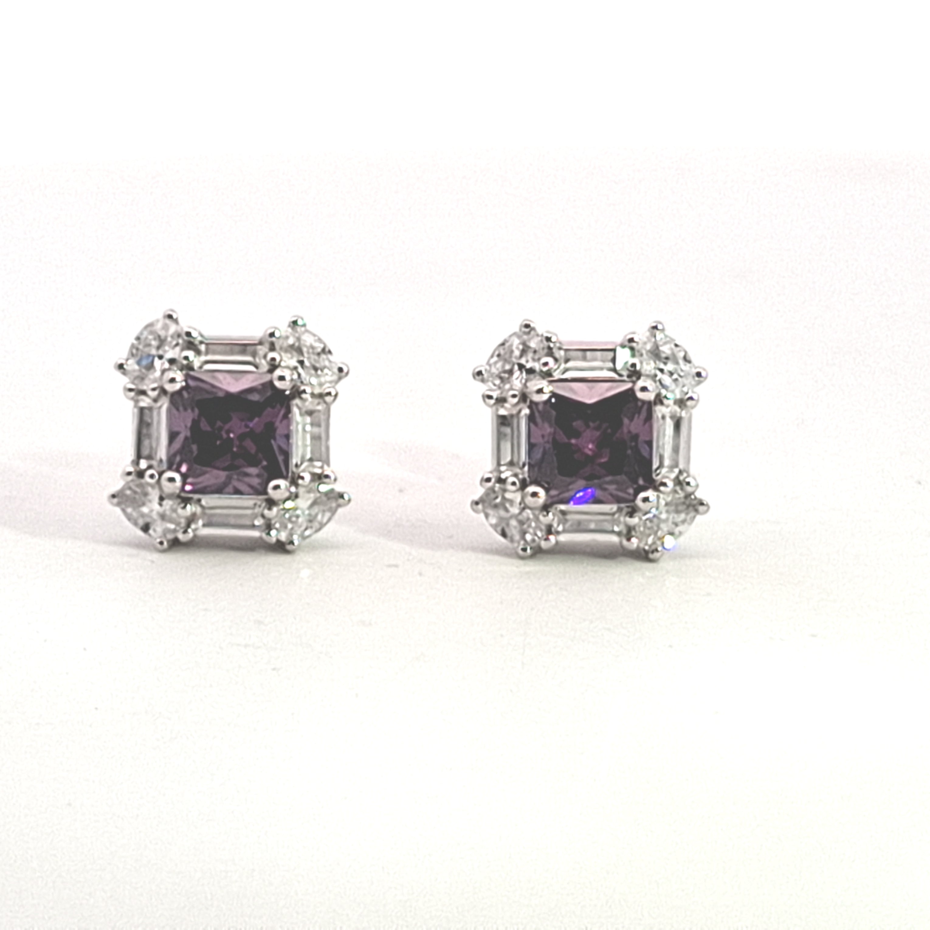 10mm Amethyst CZ cluster sterling silver earring 33676