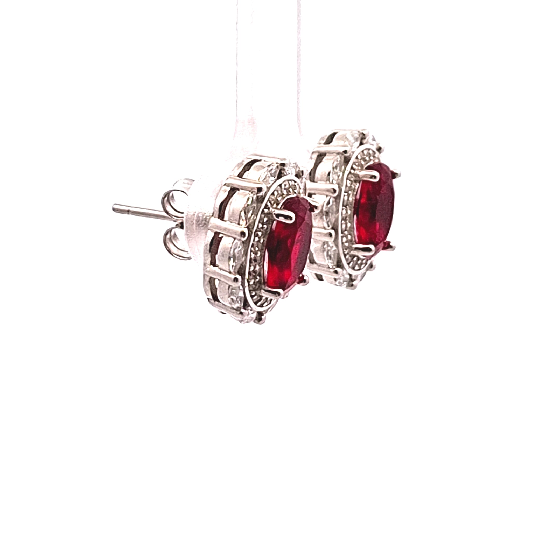 10mm Ruby Red CZ cluster sterling silver earring 33628