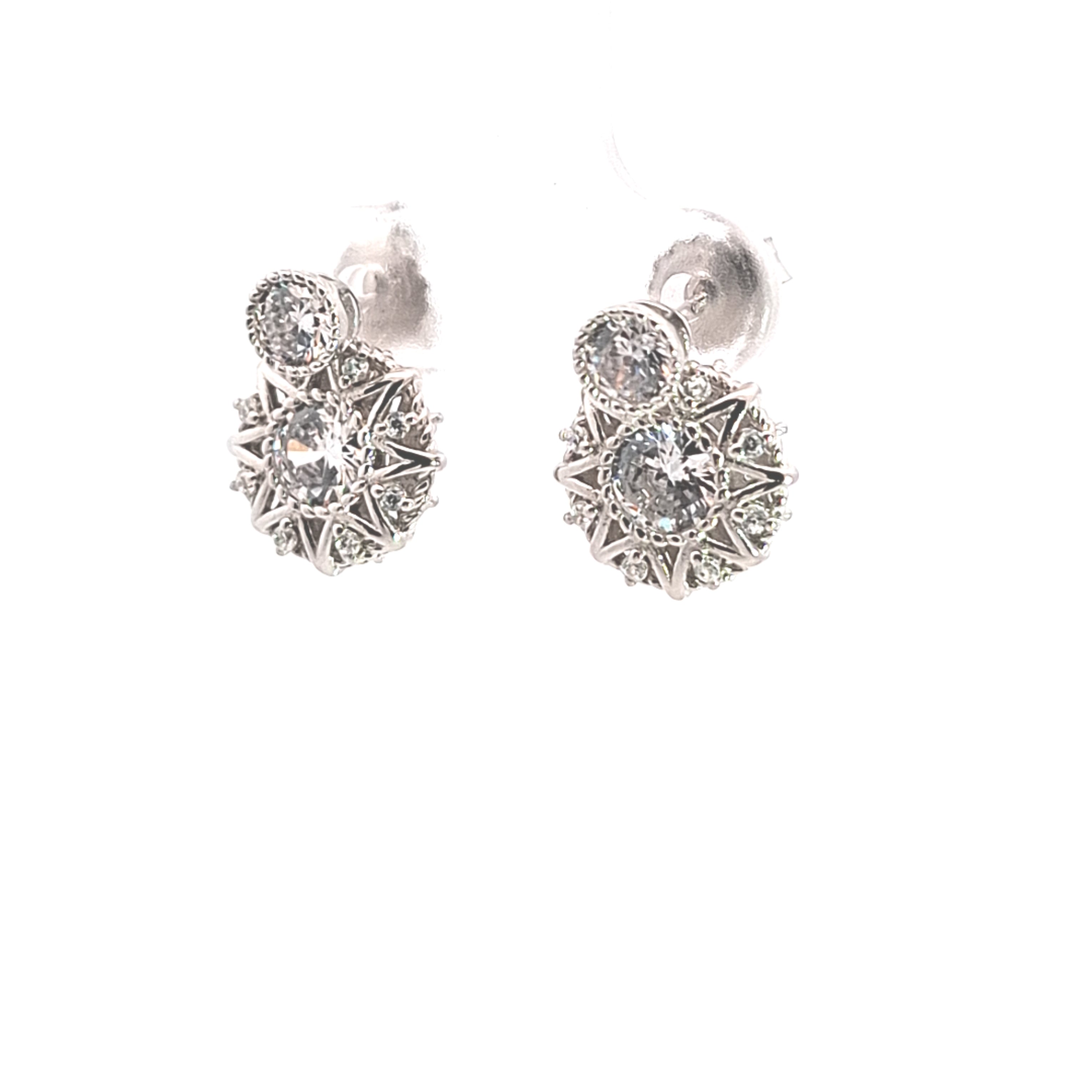 Floral CZ Halo stud earrings 38328
