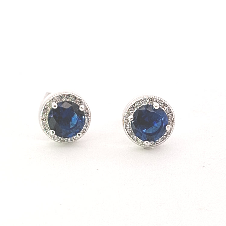 Sterling silver 8mm Blue CZ stud earring with CZ surround