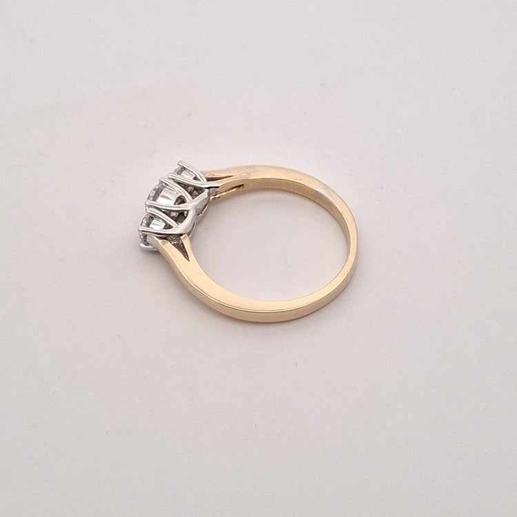 This sophisticated 9ct gold three-stone promise ring showcases a distinctive basket-style claw setting that elevates the design with both visual depth and technical precision. The three cubic zirconia stones are expertly positioned within the basket framework, a classic setting style that provides superior stone security whilst allowing optimal light penetration from all angles. This architectural approach creates a dimensional appearance, with the stones appearing to float gracefully above the band—a hallmark of premium jewellery craftsmanship. The solid shank construction demonstrates exceptional quality and durability, engineered to withstand the rigours of daily wear whilst maintaining its structural integrity over time. The substantial feel of the band conveys luxury and confidence, whilst the three-stone composition carries meaningful symbolism—often representing past, present, and future, or the enduring nature of a cherished commitment. Cubic zirconia stones deliver remarkable brilliance and clarity, offering the aesthetic impact of fine gemstones at an accessible price point. This ring represents an excellent choice for those seeking a statement promise ring that combines timeless design principles with contemporary craftsmanship and lasting durability.