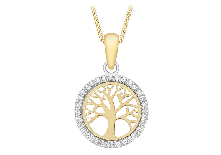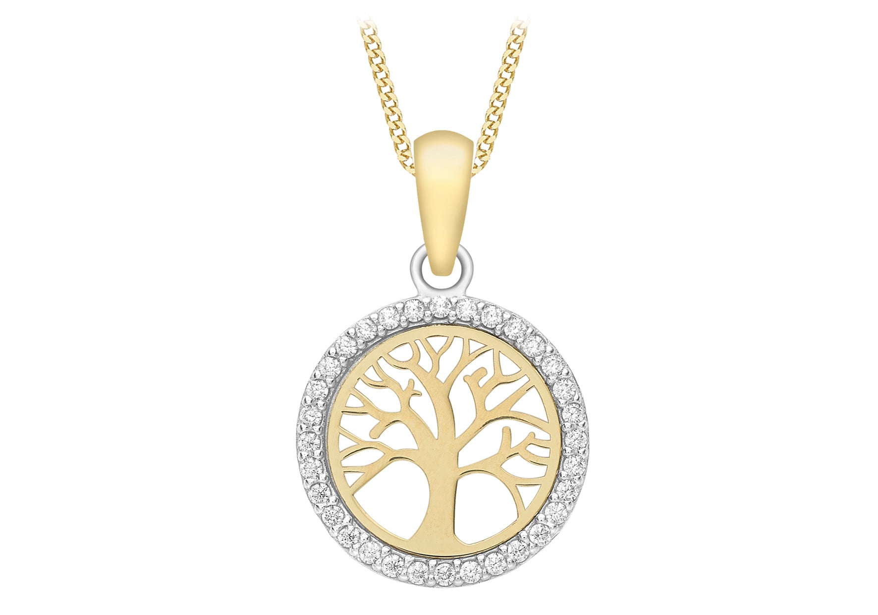 9ct gold circular Tree of Life pendant with CZ set surround presented On Diamond cut trace chain suitable for pendants, adjustable 16"/41cm-18"/46cm