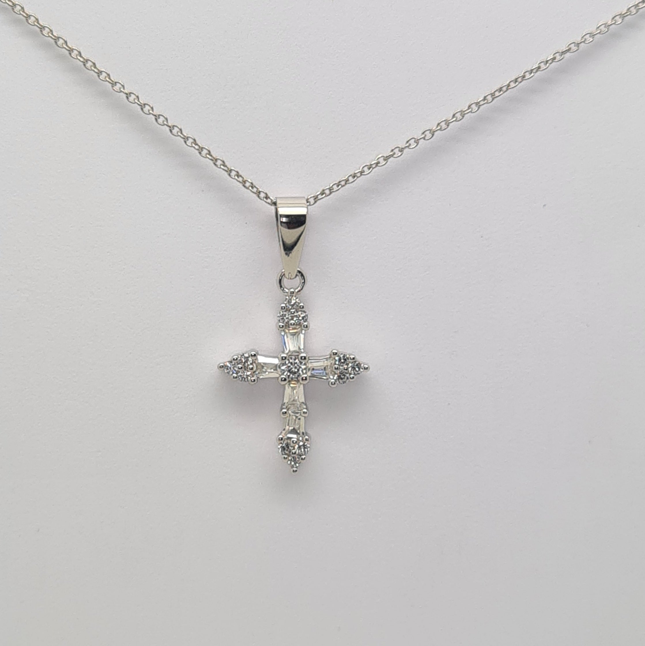 sterling silver 20mm plain Latin cross, on 40cm/16" diamond cut curb link chain. 10354