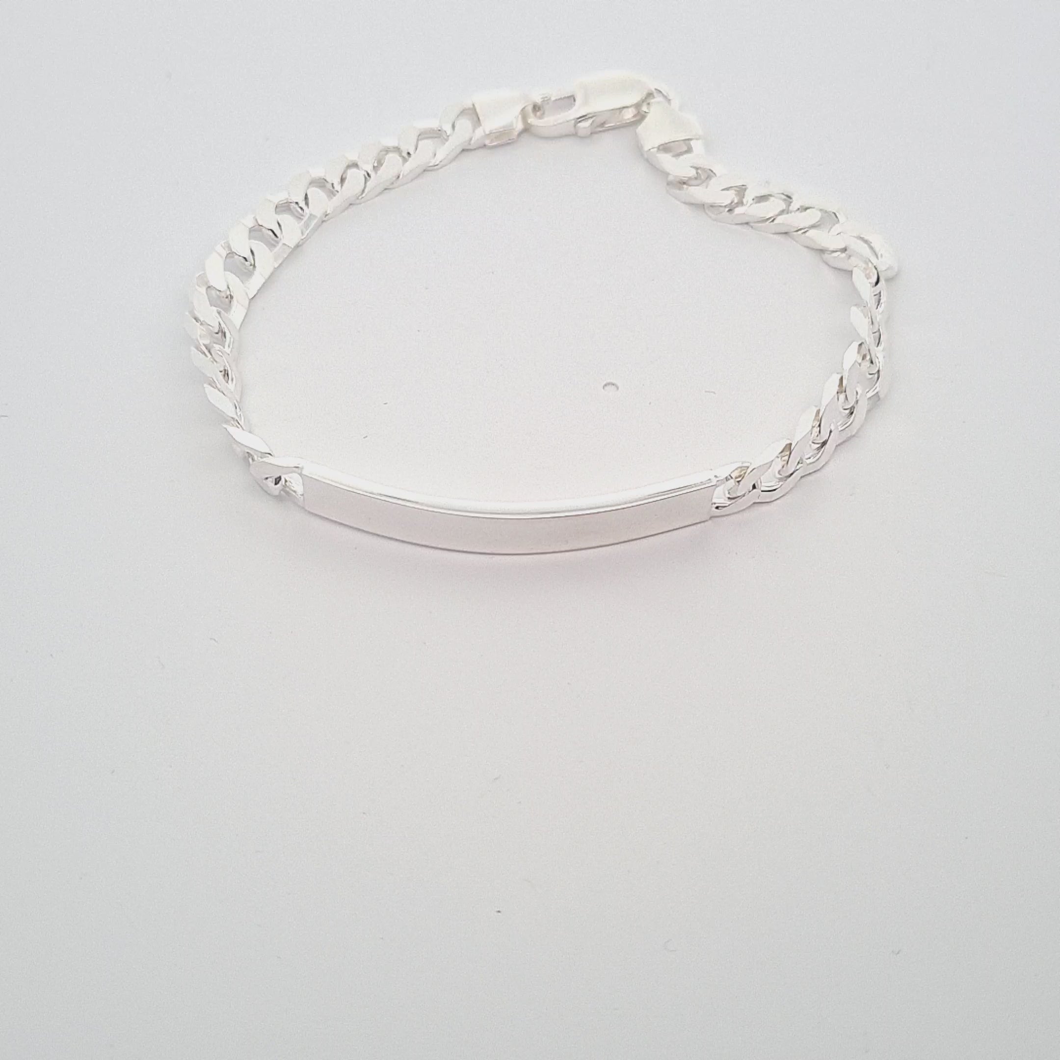 Sterling silver lady's ID bracelet with cut out heart, 3+1 Figaro link bracelet 31925