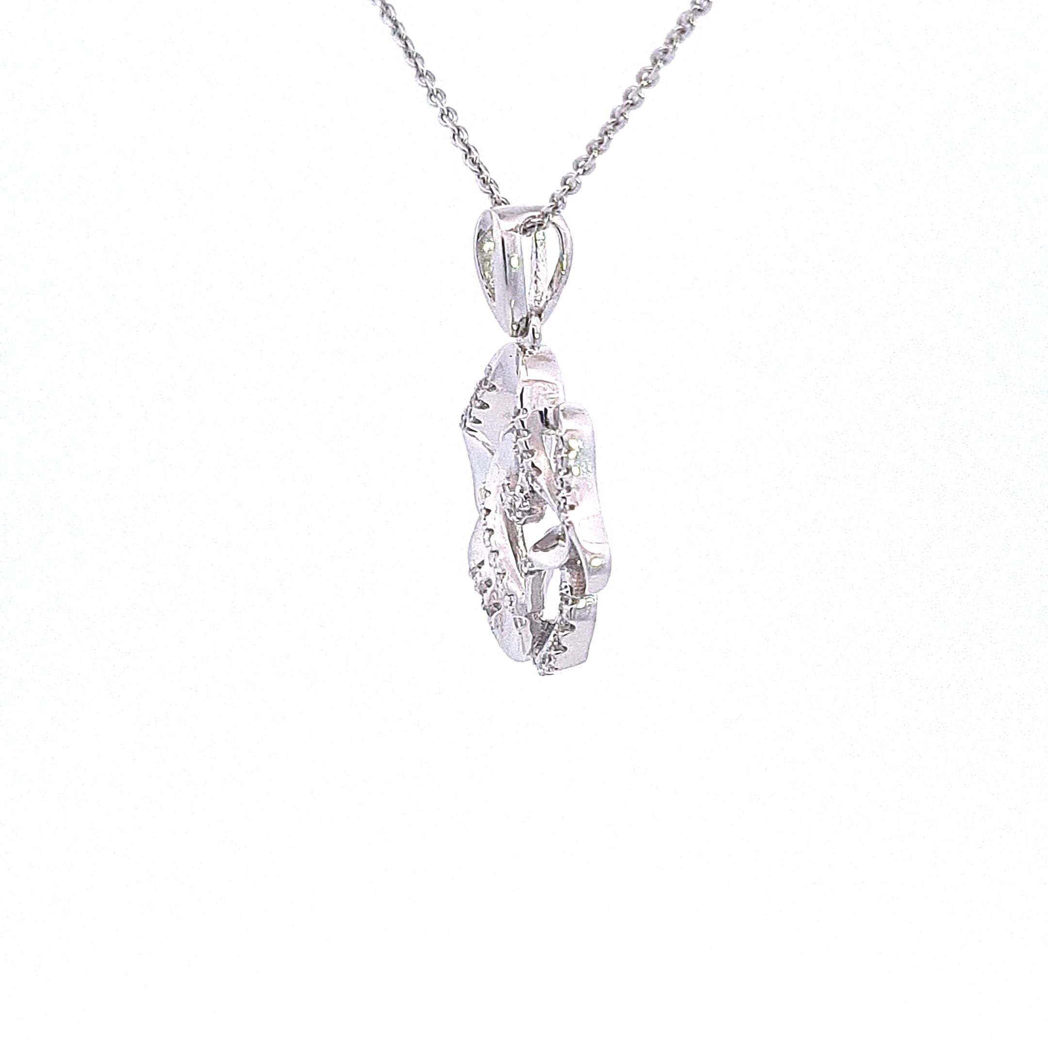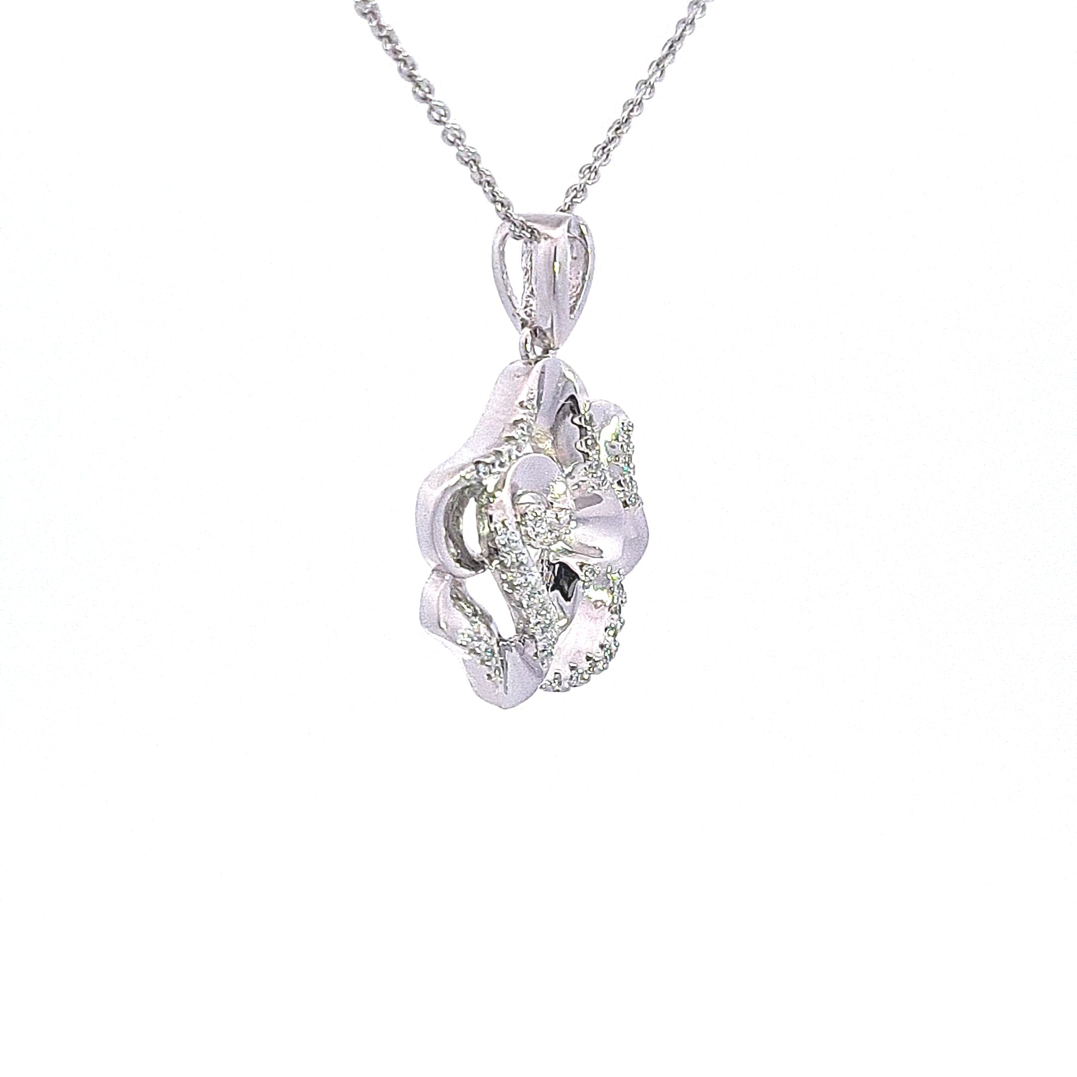 Sterling silver folded ribbon set with CZ pendant on 18"/46cm trace chain