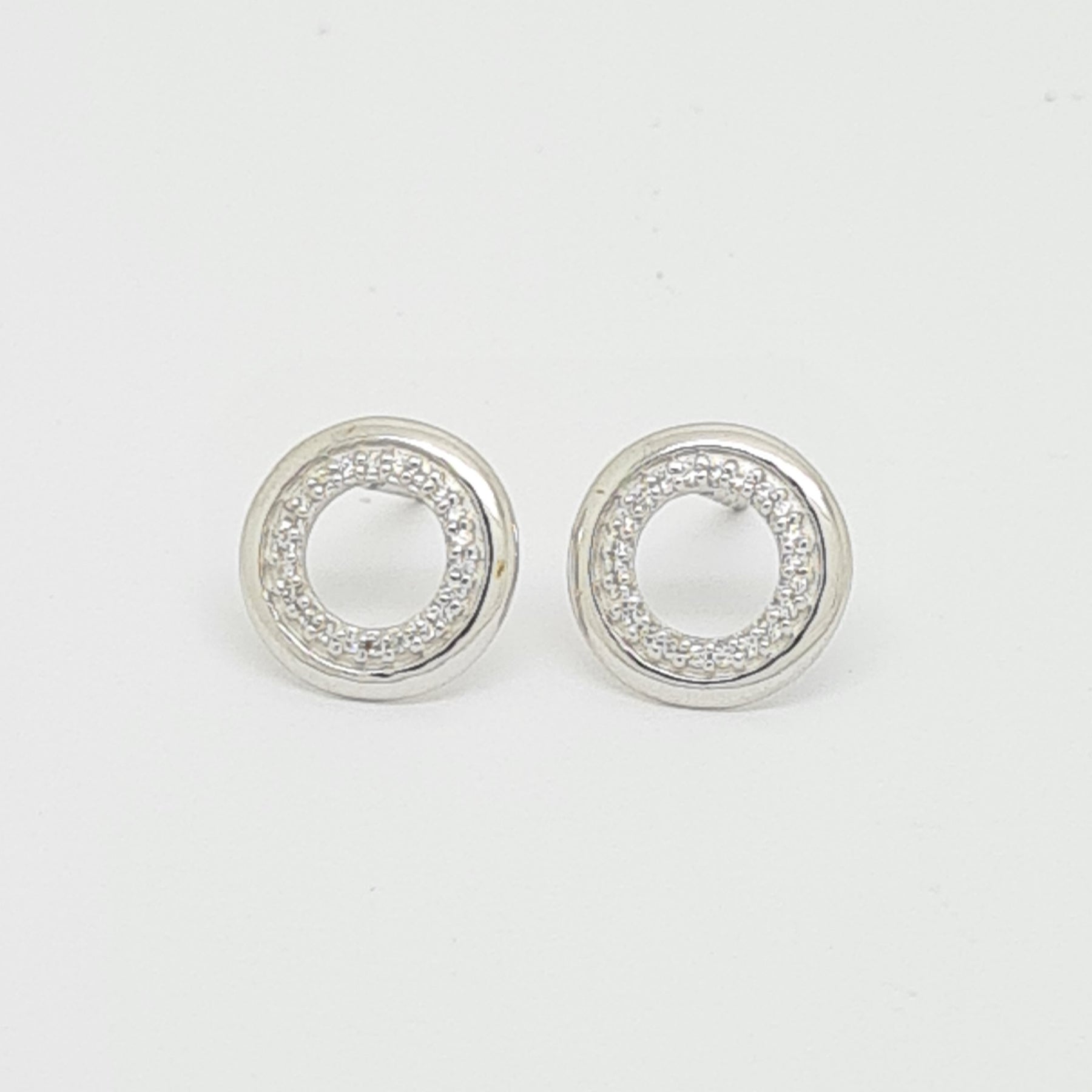 9ct white gold CZ set circle stud earrings 34645 - Armin Lowe Jewellers