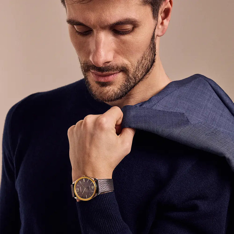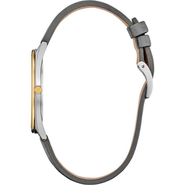 The Citizen AR3124-07H Stiletto Surrato Eco Drive Gents Strap Watch is designed for the discerning gentleman seeking a sleek and sophisticated timepiece. Its slimline 38mm stainless steel case combines silver and gold tones, delivering a refined two-tone finish that complements a variety of outfits. The two-hand grey dial features a captivating metallic powder texture, accented by gold-tone hands and markers, enhancing readability while adding a touch of elegance. Powered by Citizen’s innovative Eco-Drive technology, this watch charges from any light source, ensuring reliable, maintenance-free operation without the hassle of battery changes. The strap offers comfort and style, making the AR3124-07H an ideal choice for both formal occasions and daily wear.