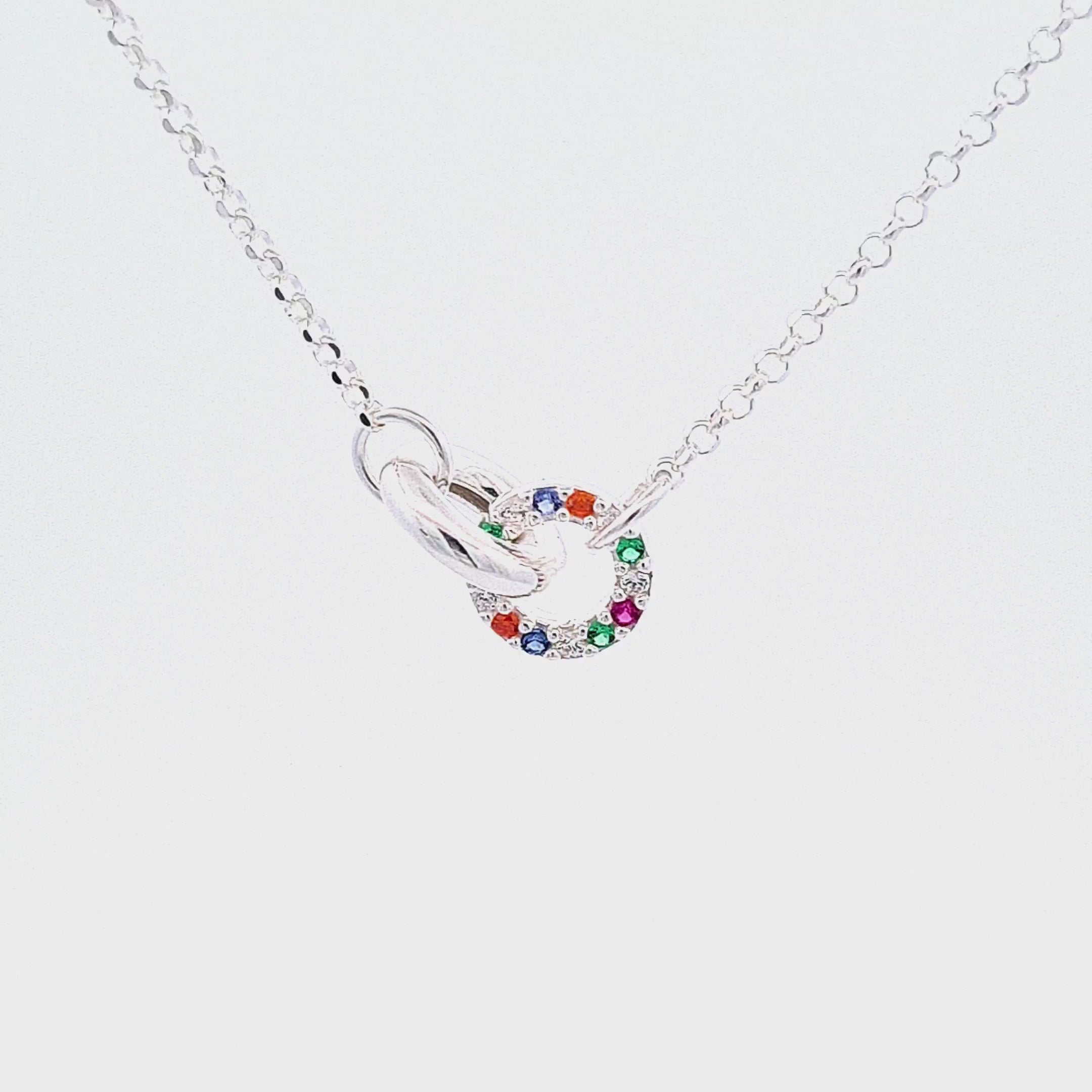 Sterling silver Connected circles pendant with multi colours on adjustable 16"/41cm-18"/46cm chain