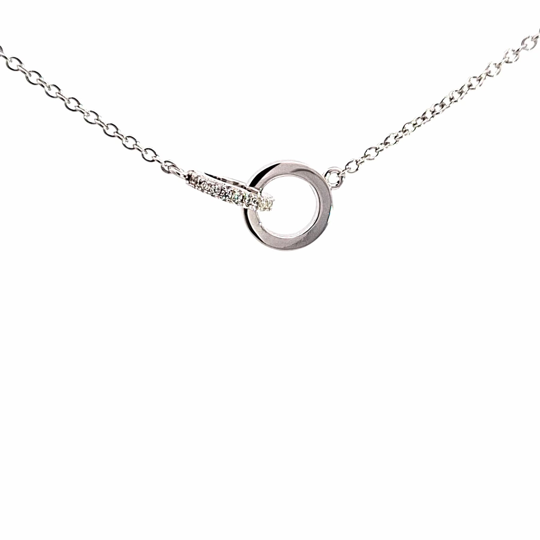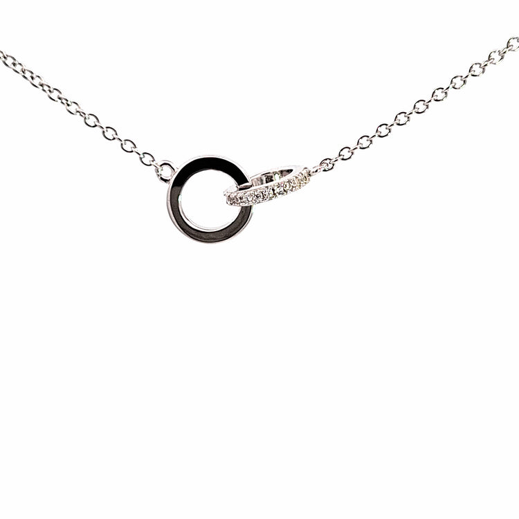 Sterling silver Connected Circles pendant on adjustable diamond cut 17"/43cm chain, with micro claw set CZ