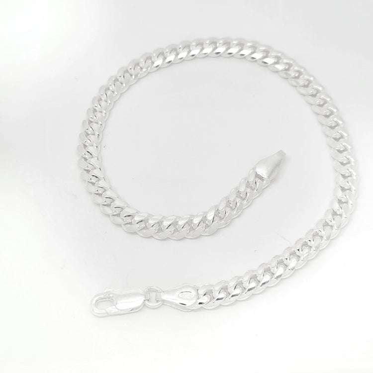 Cuban curb link gents 24"/61cm chain, 5mm wide, in sterling silver. Trigger catch