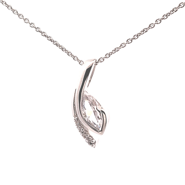 Sterling silver fancy Marquise CZ set in curved arc fashion with side set CZ presented on 18"/46cm cable link chain
