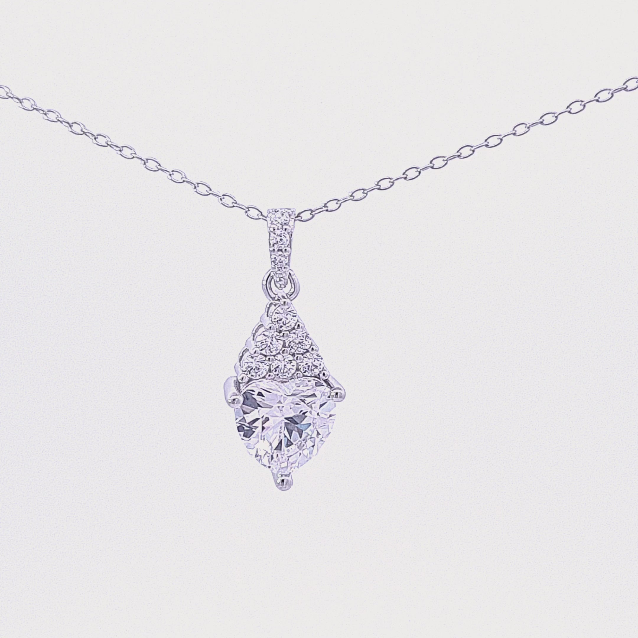 Sterlng silver CZ heart pendant with fancy top CZ set on 18"/46cm chain