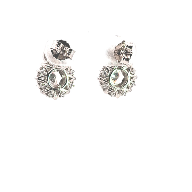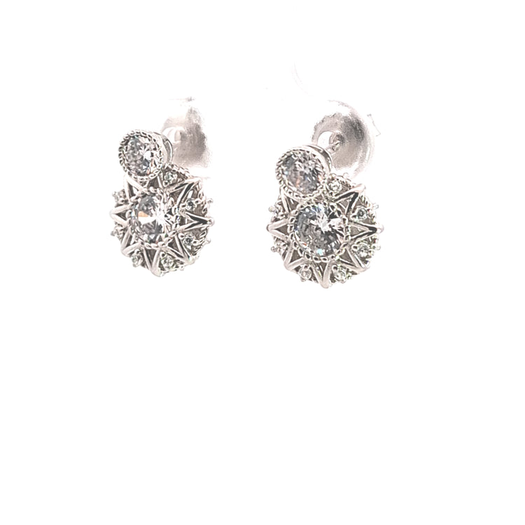 Sterling silver fancy geometrical CZ set drop earrings with detail front and back