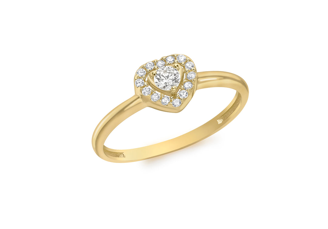 9ct yellow gold 1 x 3mm and 14 x 1mm CZ 7.5mm x 6.5mm 'heart halo' ring