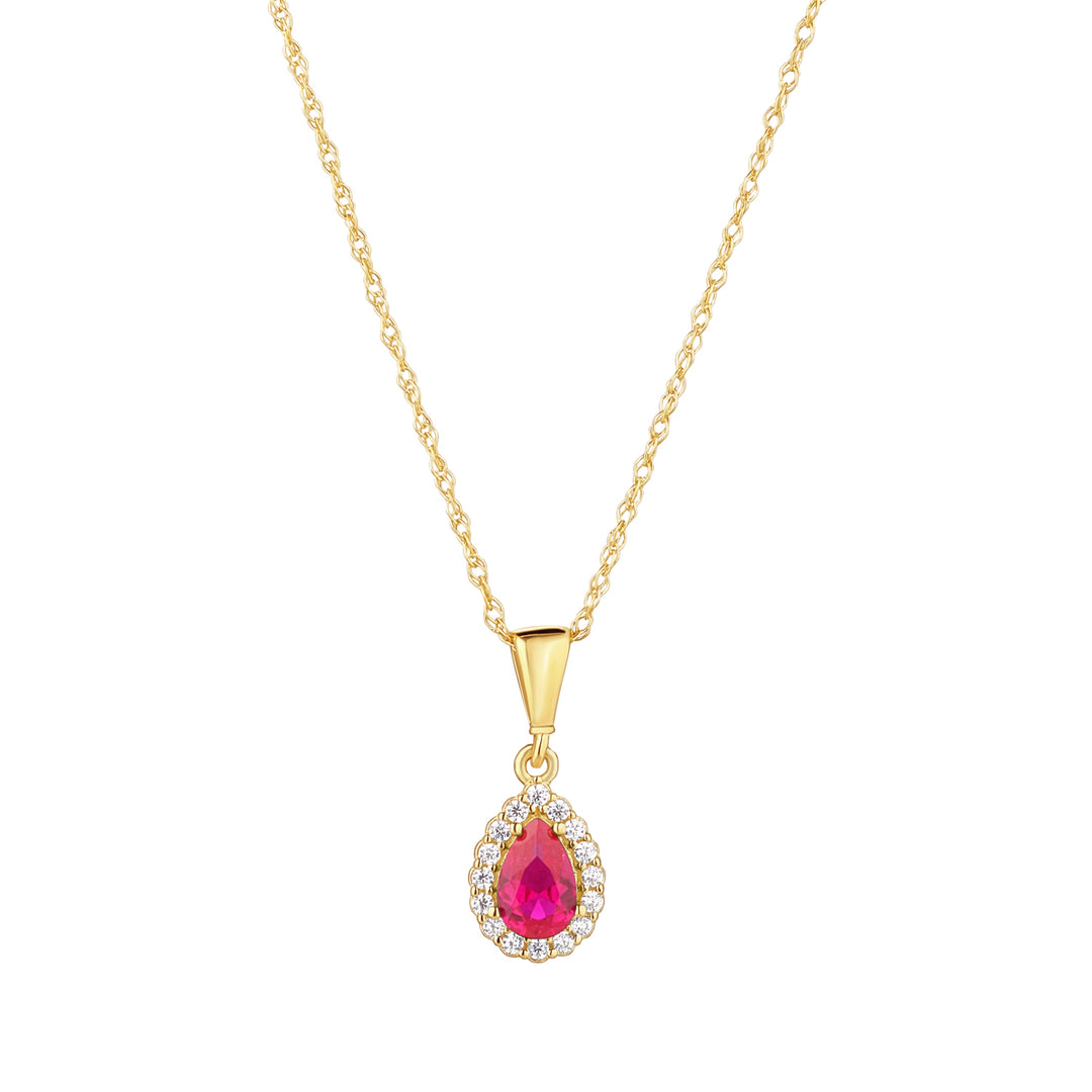 Gold Pear shape Ruby Red CZ Pendant 36414