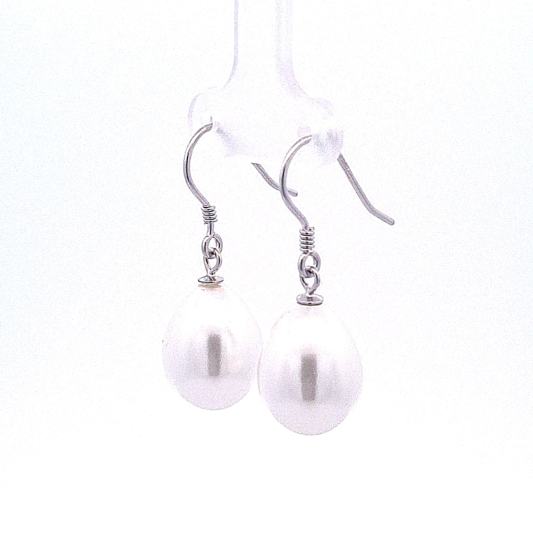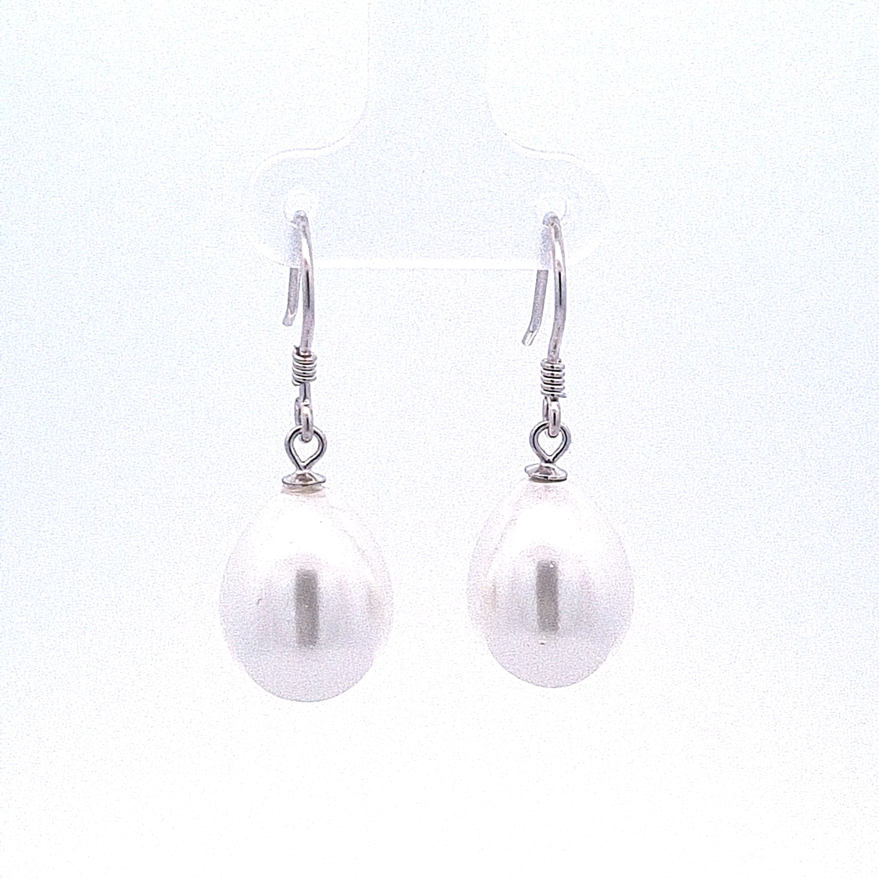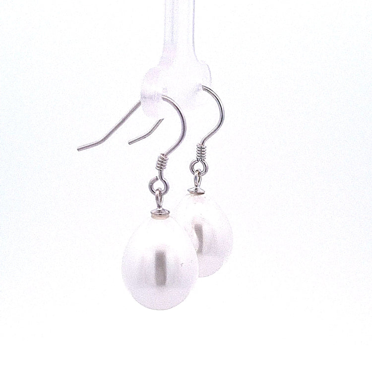 12x16mm oval drop pearl earring on sterling silver hook fitting