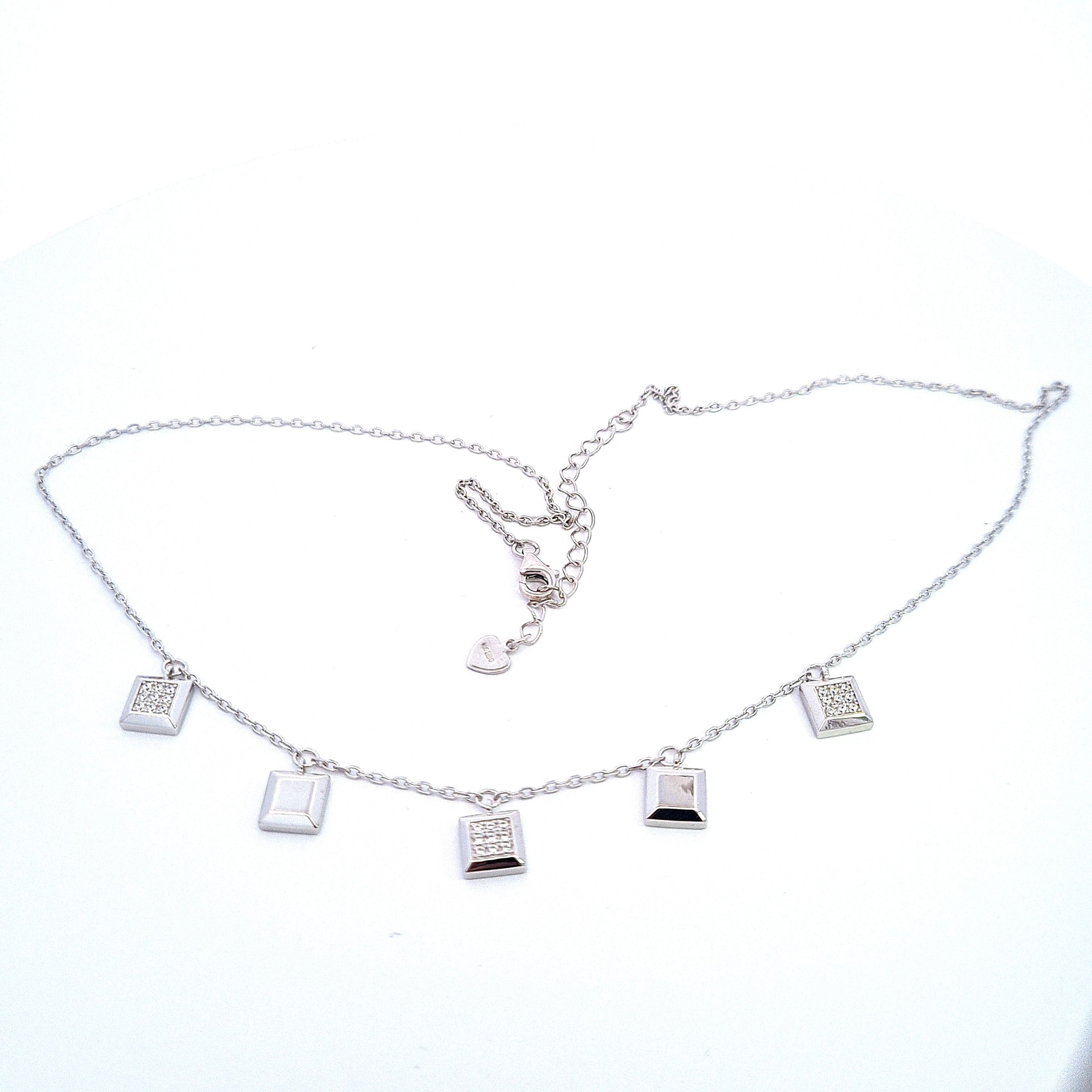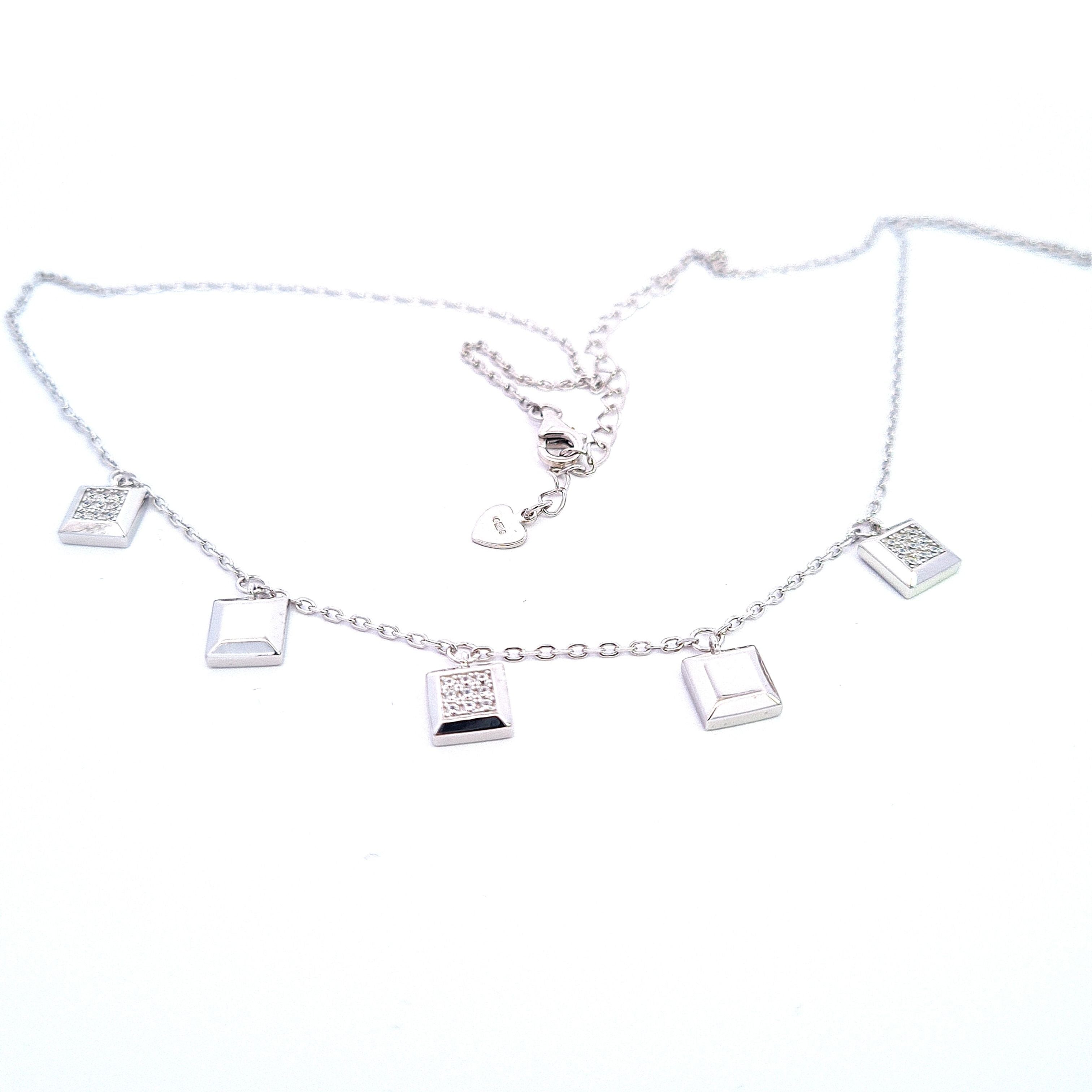 Sterling silver multi CZ set panels necklace, adjustable 16"/41cm-18"/46cm
