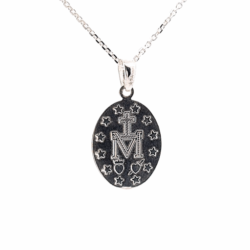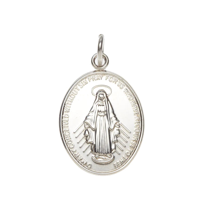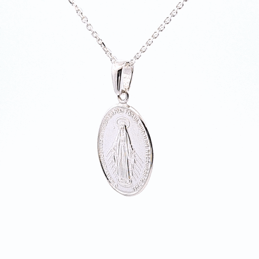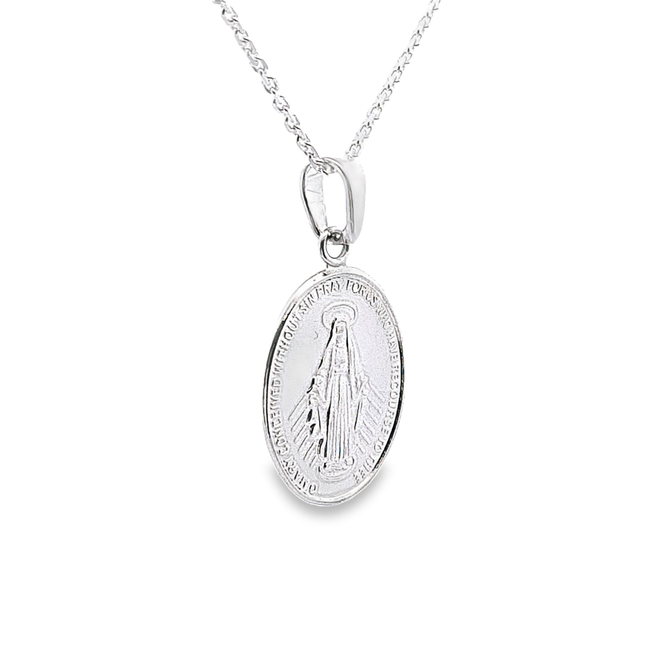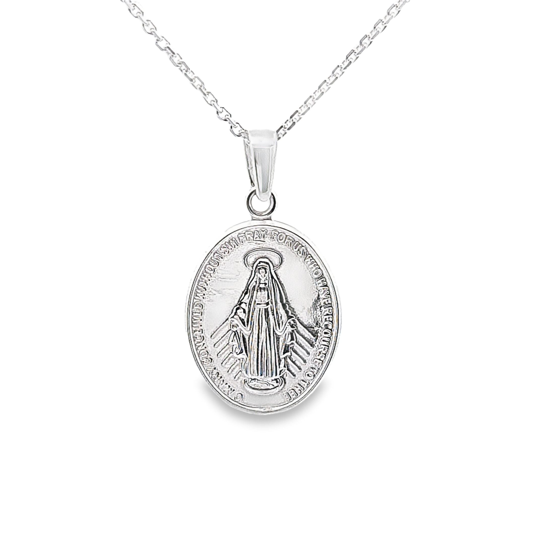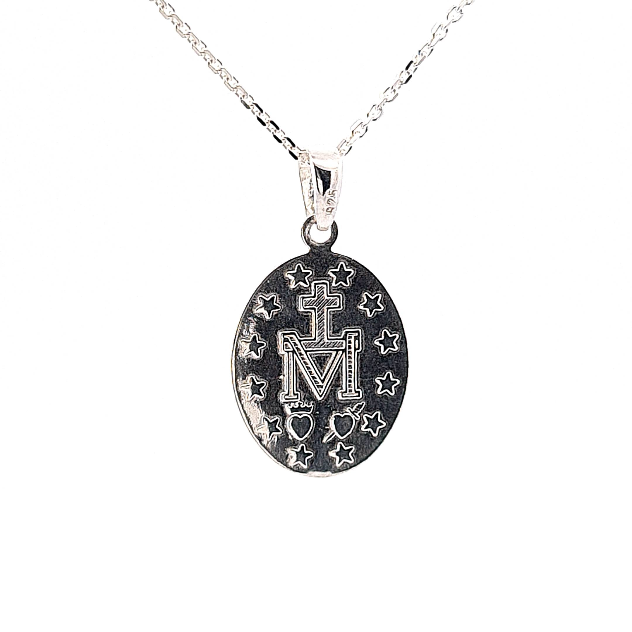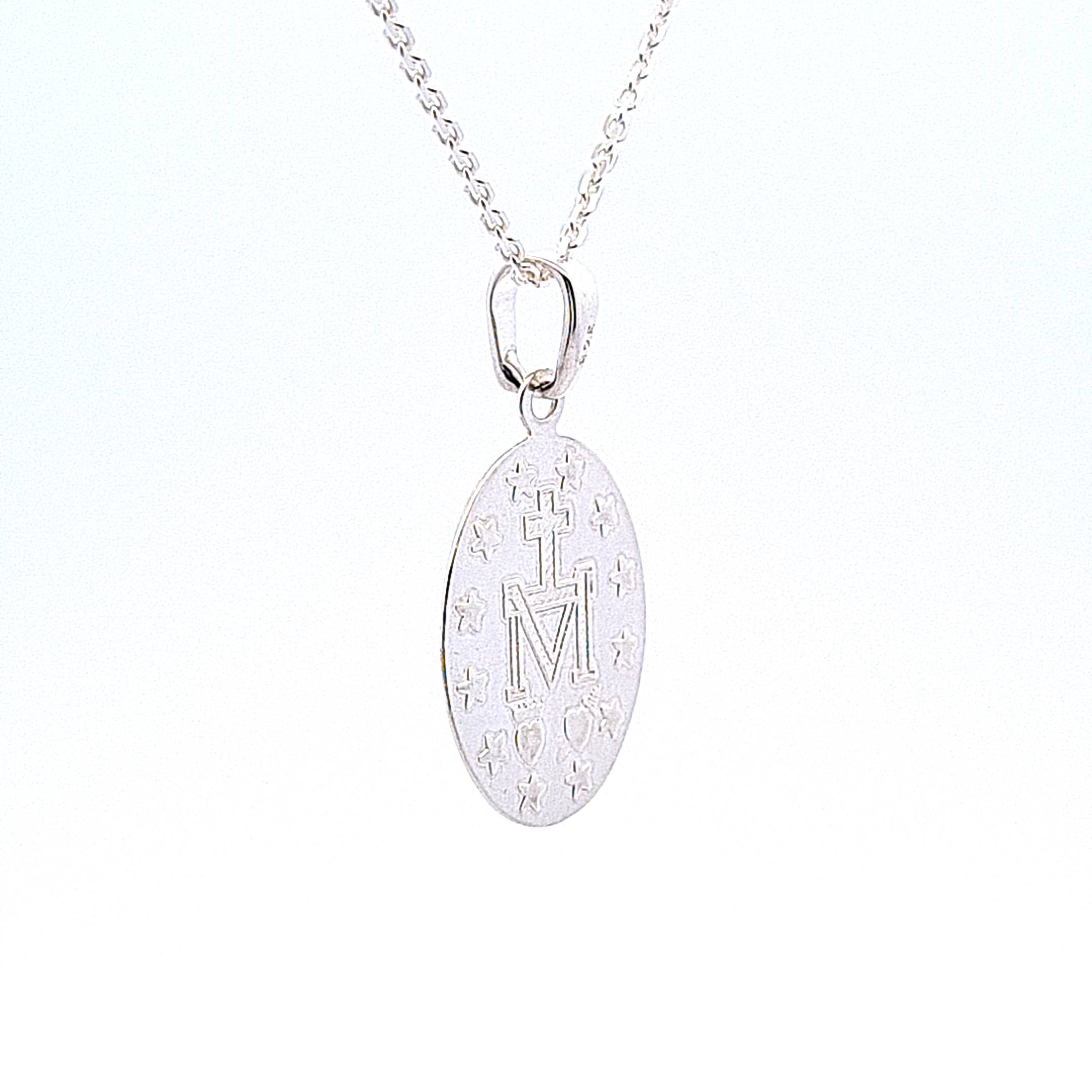 Sterling silver 20mm tall Miraculous medal on diamond cut 20"/51cm chain