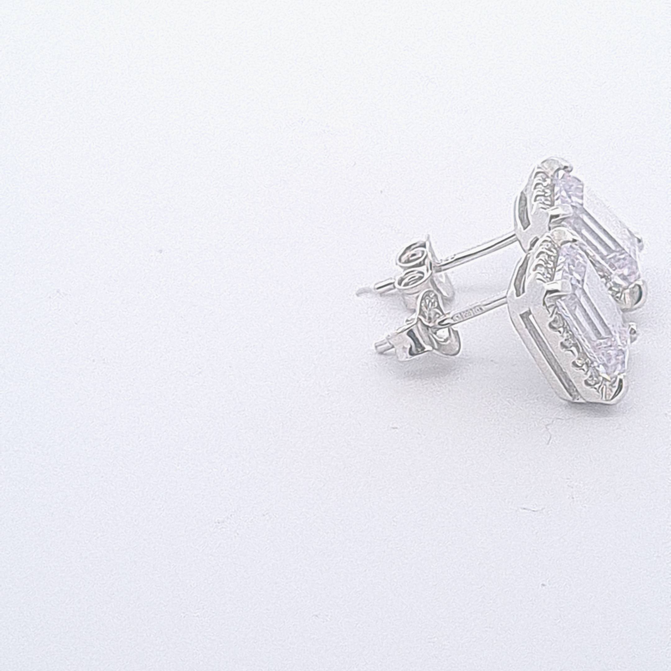 Emerald cut CZ Halo cluster studs. Sterling silver. 7mm x 9mm.