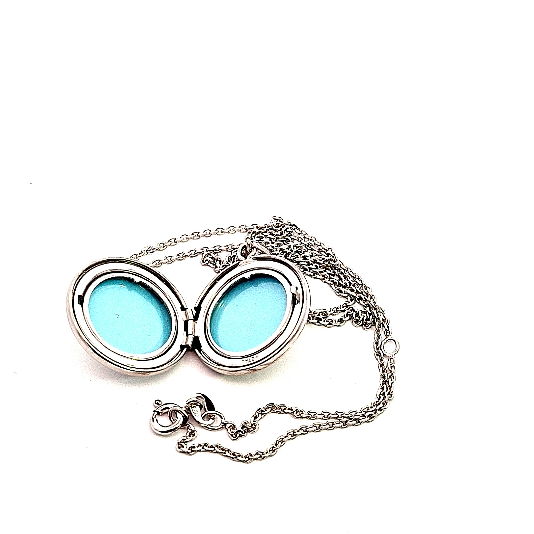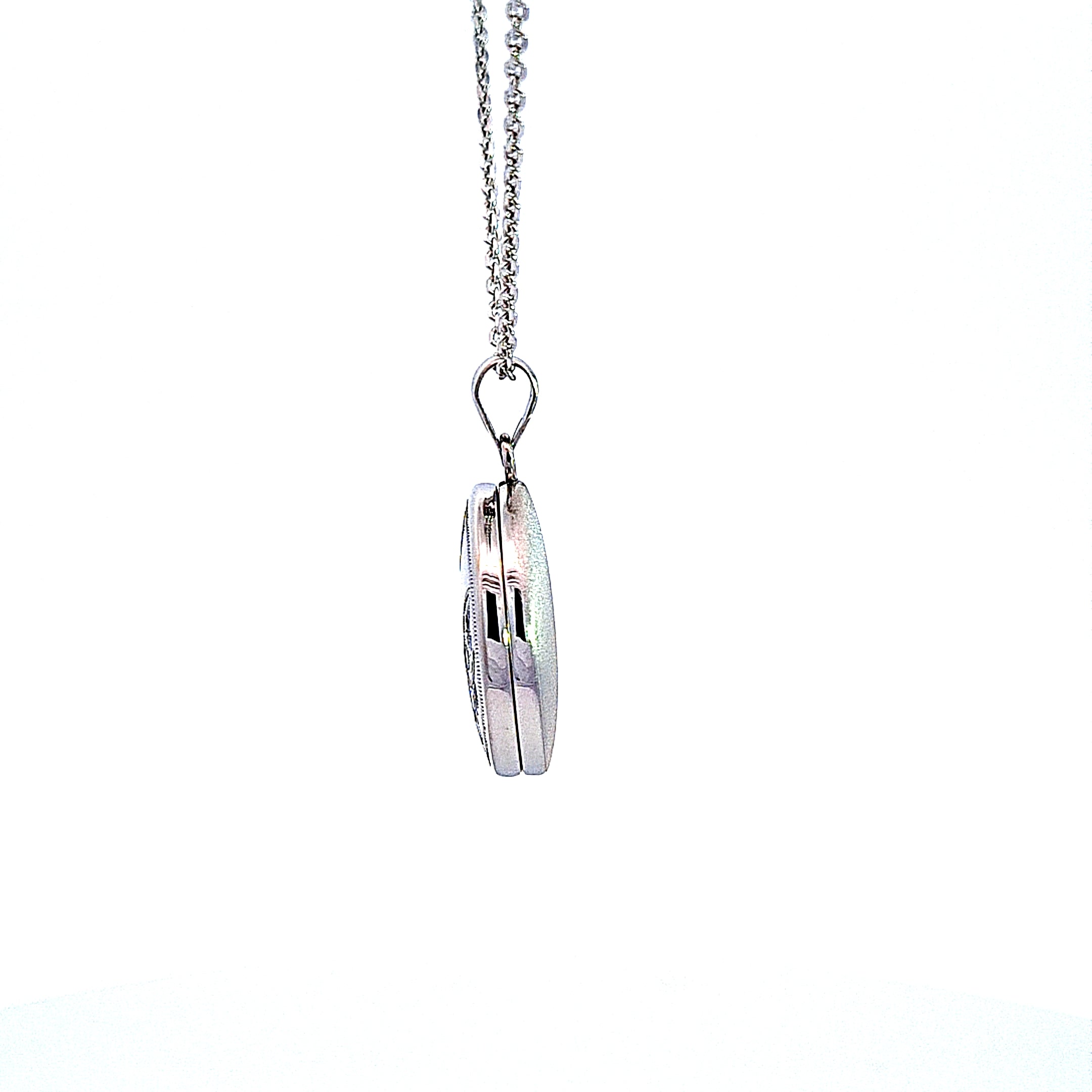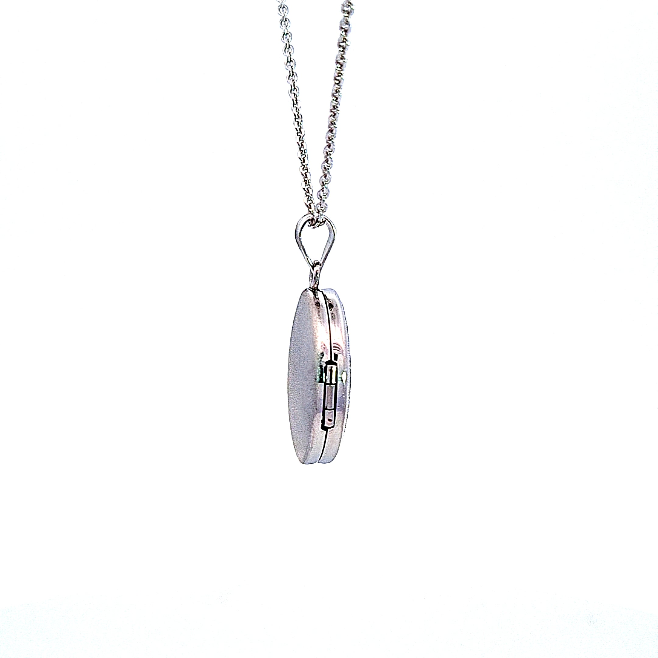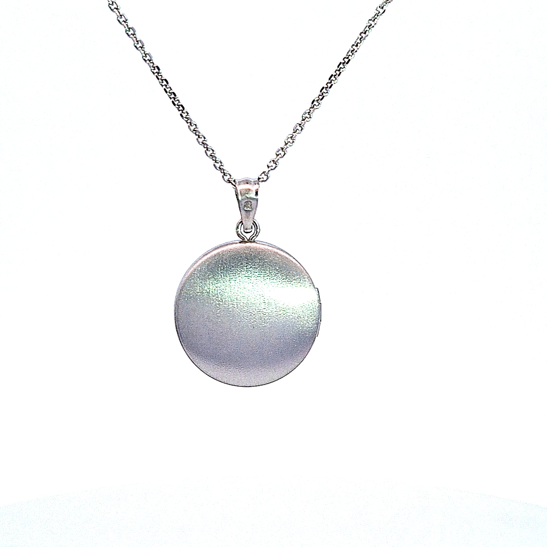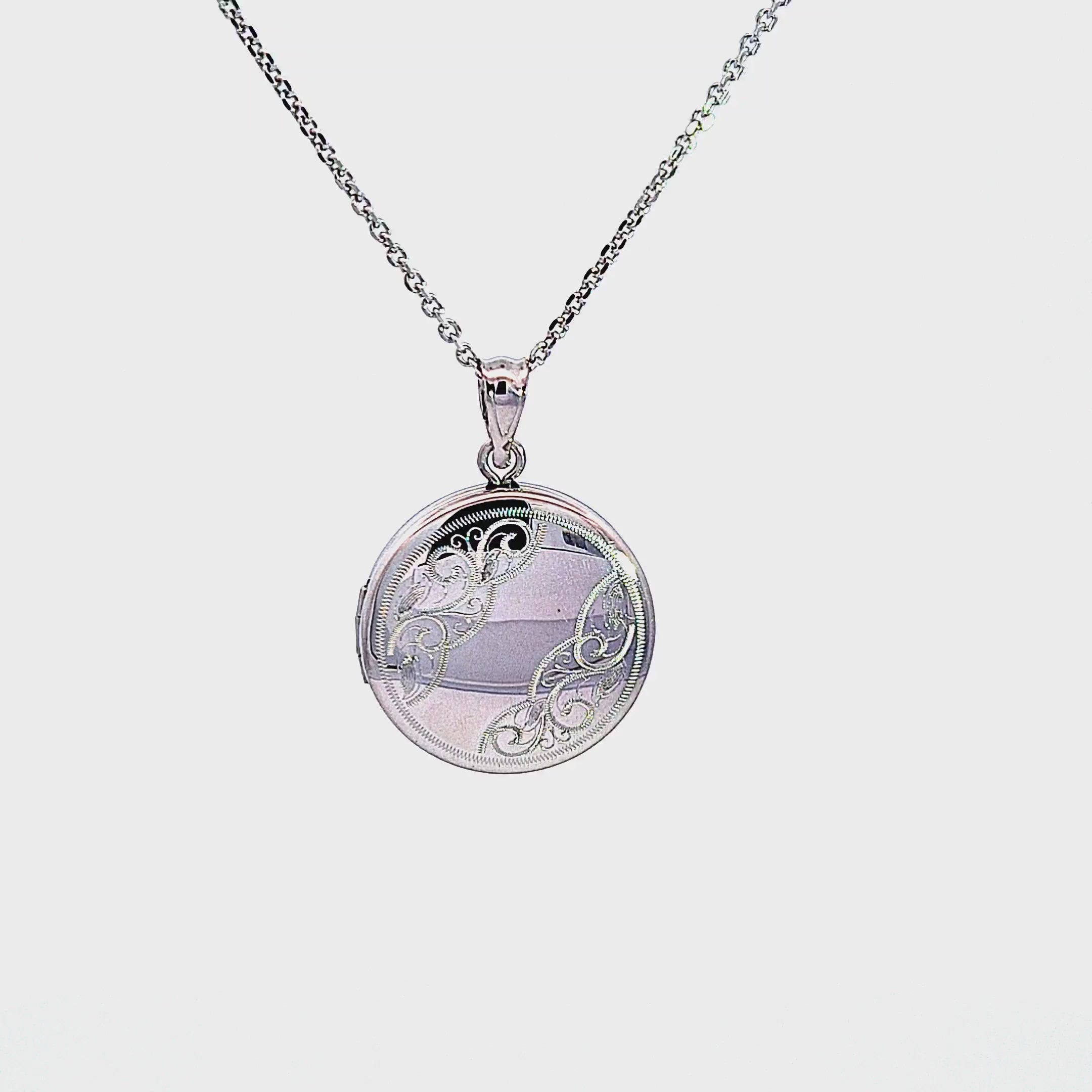 Sterling silver round 2 picture locket, delicate embellishment to front, back is plain. 18"/46cm diamond cut curb chain. Ready to engrave if required